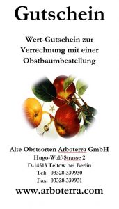 Wert-Gutschein zur Verrechnung mit einer Obstbaumbestellung